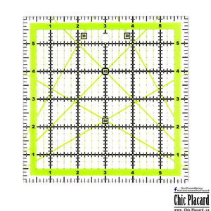 La règle pour la courtepointe, la couture et l'artisanat pour utiliser avec les couteaux rotatifs et les lames droites. Marques en angle de 45 degrés pour le biais et la coupe de triangles Lignes transparentes vert néon à double vision qui semblent briller sur les tissus clairs et foncés.