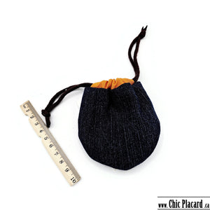 Petite pochette qui se refermables grâce à deux cordons coulissants pour y mettre de la monnaie, des bijoux ou d'autres petits accessoires.