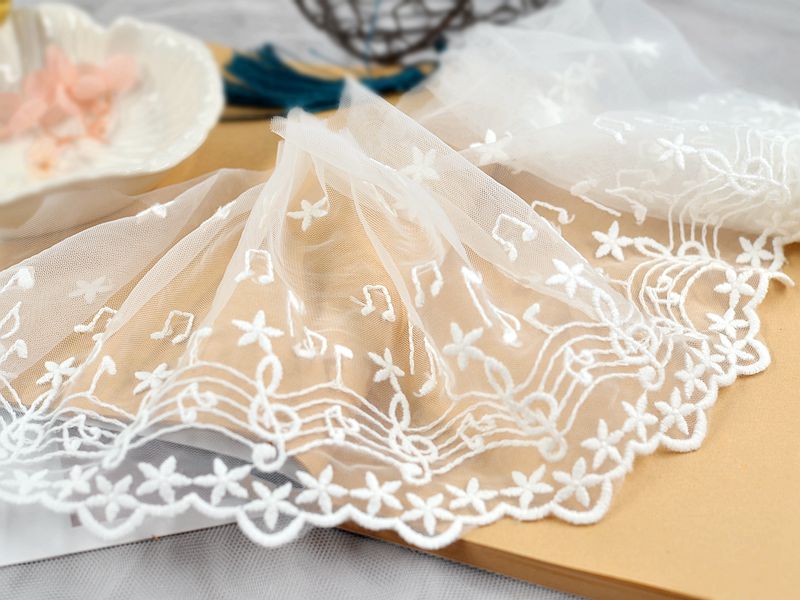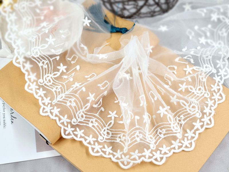 Dentelle de chiffon noire garnie de blanc 7cm (au 1/2m)