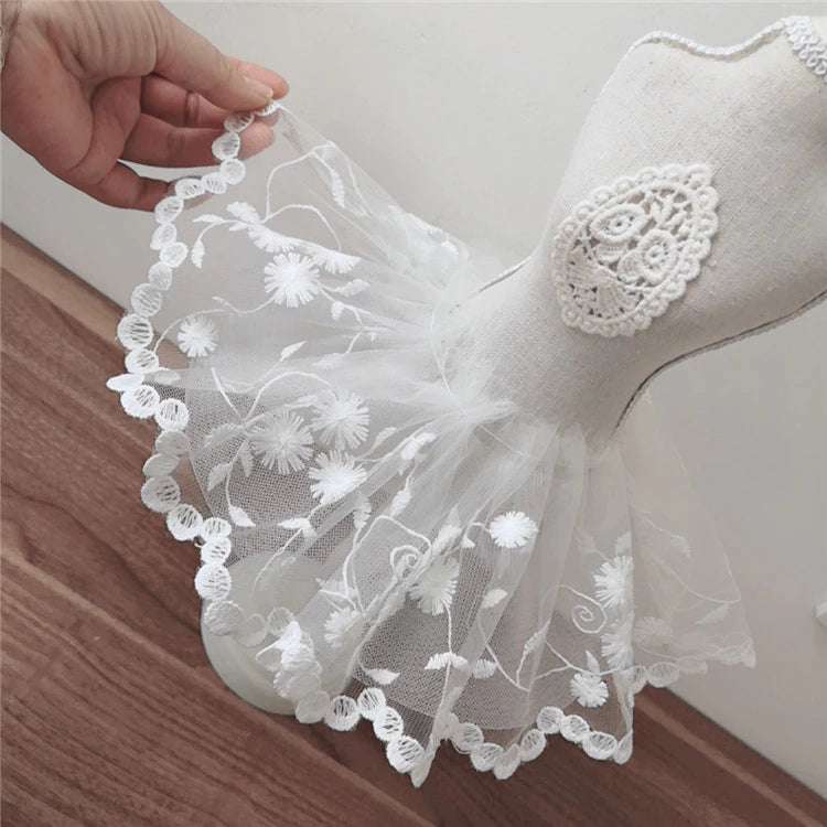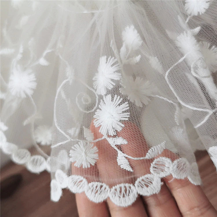 Dentelle légère brodée de fleurs blanches 12cm (au 1/2m)