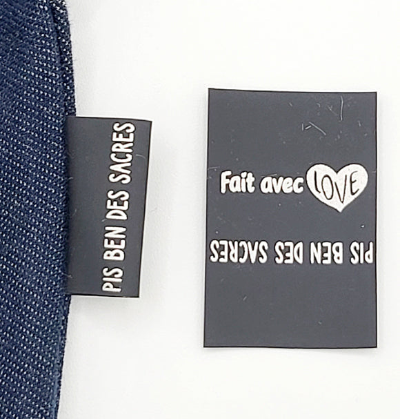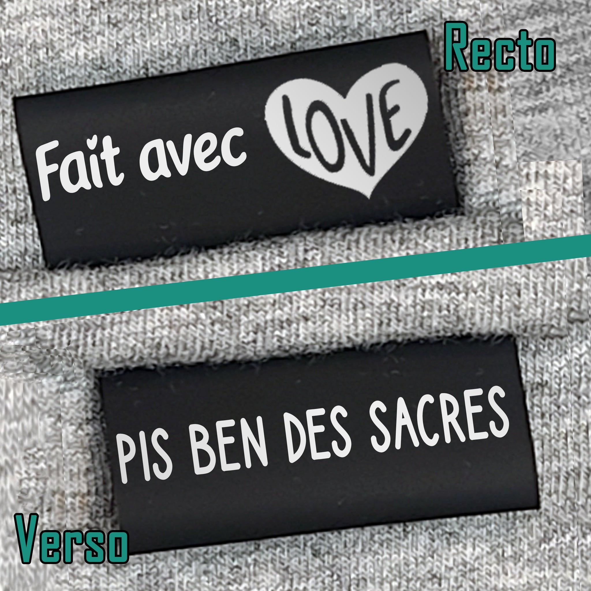 Fait avec love pis ben des sacres - Taffeta noir & encre argent