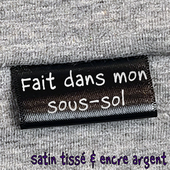 Fait dans mon sous-sol - Satin tissé noir & encre argent