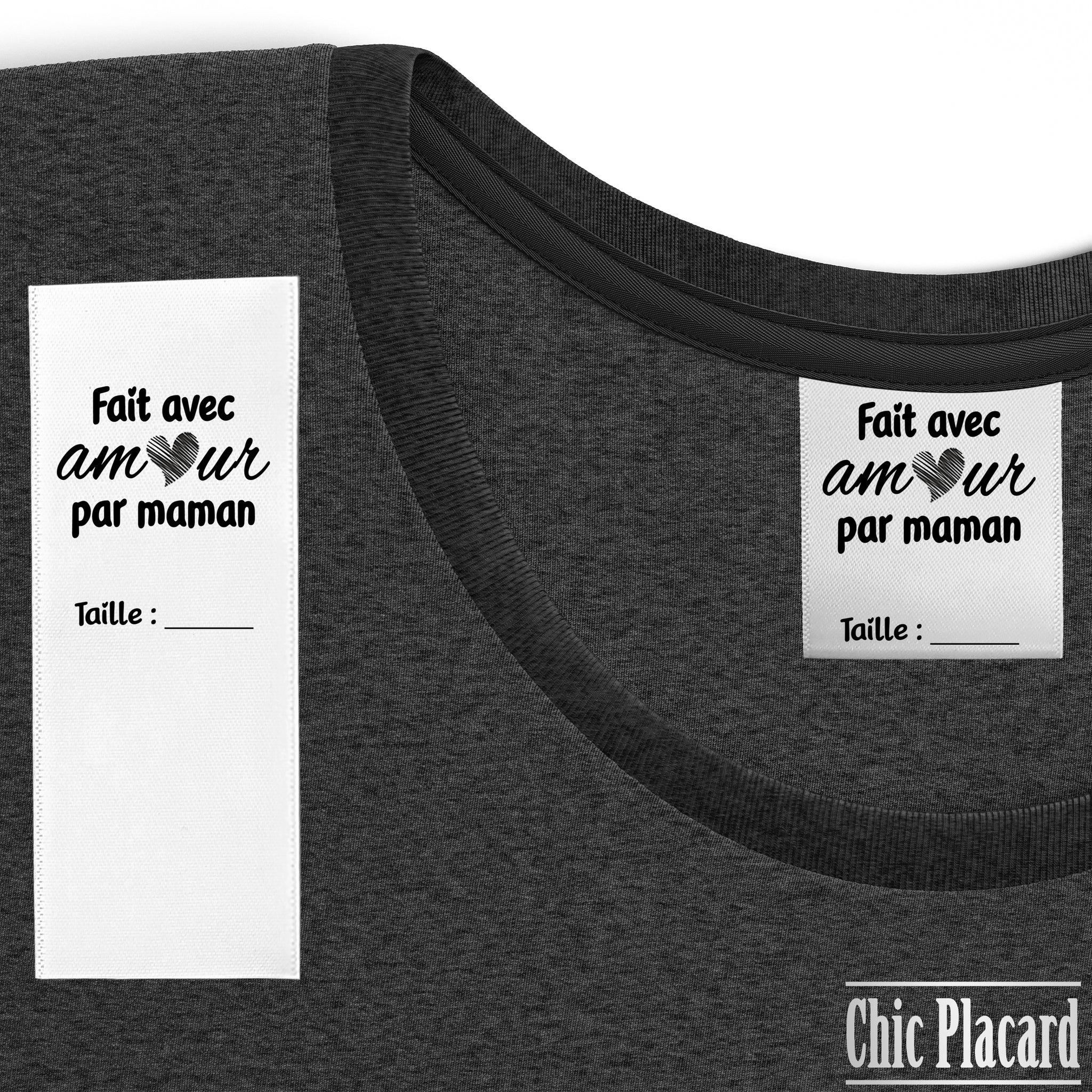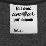 Fait avec amour par maman (80mm) - Satin tissé & encre noire