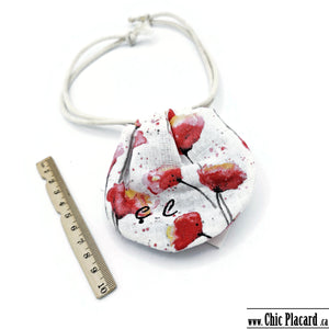 Petite pochette qui se refermables grâce à deux cordons coulissants pour y mettre de la monnaie, des bijoux ou d'autres petits accessoires.