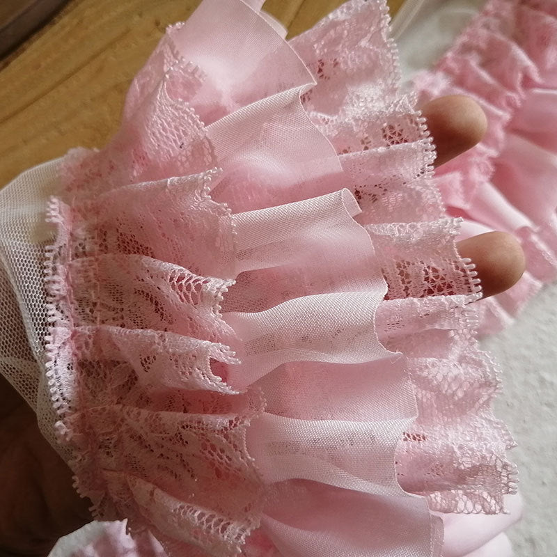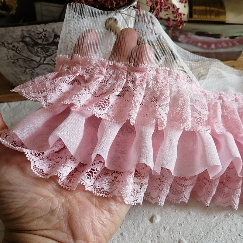 Frange décorative en froufrou de dentelle - Rose princesse - 9cm (Emballage de 3m de longueur)
