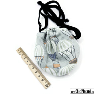 Petite pochette qui se refermables grâce à deux cordons coulissants pour y mettre de la monnaie, des bijoux ou d'autres petits accessoires.