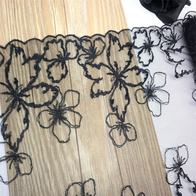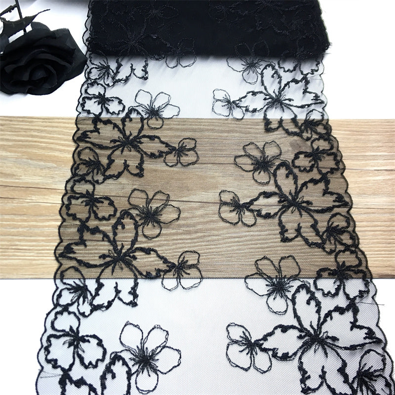 Noire 20cm - Dentelle brodée (au 1/2m)