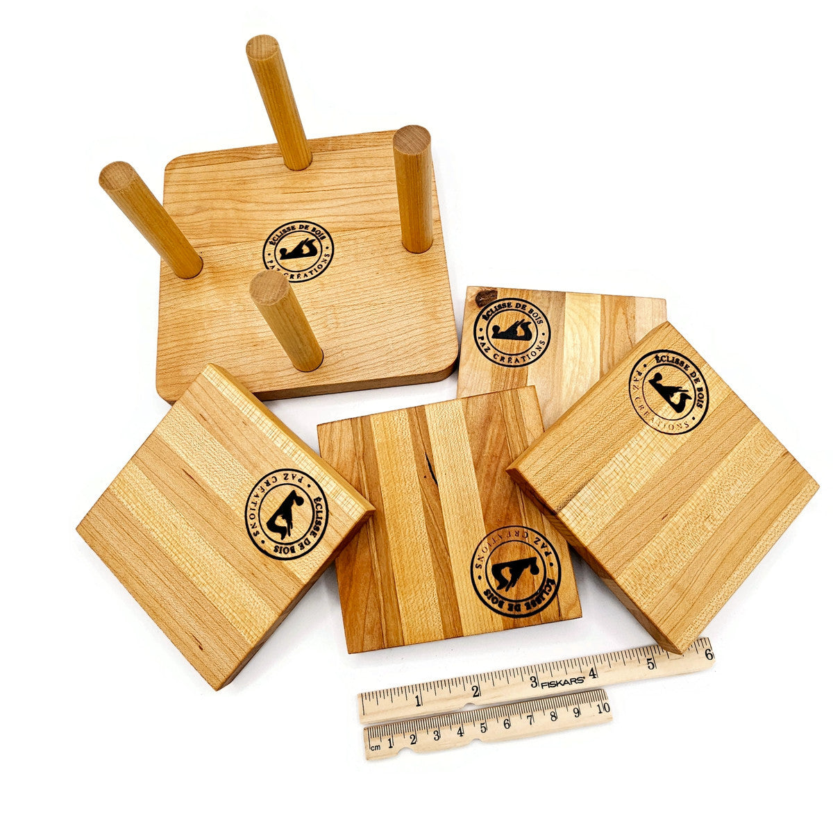 Le classique - Sous-verres (4) et support par Eclisses de bois - Paz créations