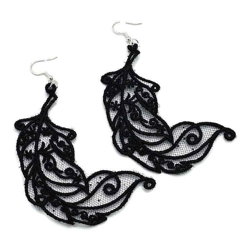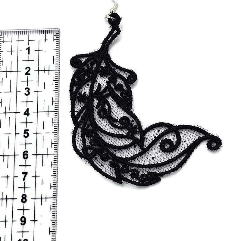 Plumes noires élégantes - Boucles d'oreilles brodées par Artis'Anna
