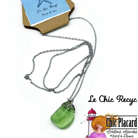 Vert - Pendentif en verre de mer - Le Chic Recyc