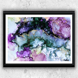 Impression haute qualité sur carton blanc mat ou papier recyclé épais blanc, une reproduction d'une oeuvre originale signée Calie.  L'oeuvre originale a été faite avec de l'encre à l'alcool.