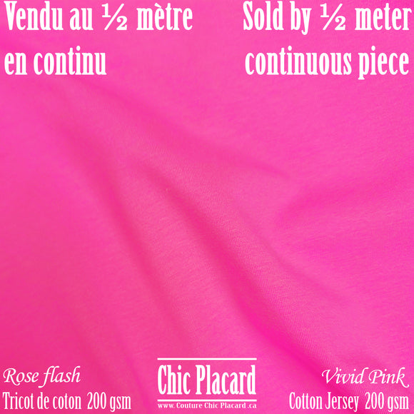 Rose FLASH - Tricot de coton 200 gsm (au 1/2m)