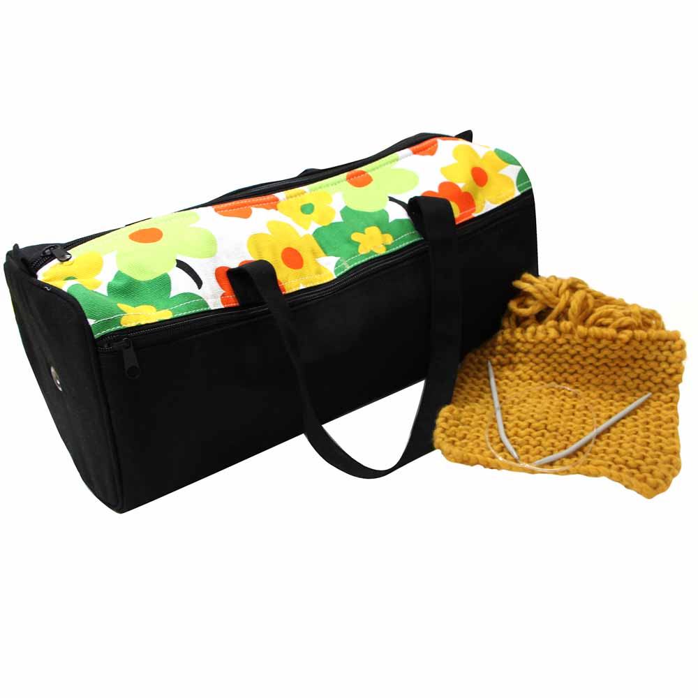 Un œillet de chaque côté du sac pour le fil à tricoter. Magnifiquement doublé, deux compartiments, parfait pour ranger vos fournitures et une section au milieu avec un trou pour votre fil prêt à tricoter. Parfait pour le voyage. Taille: 43 x 15 x 15cm (17″ x 6″ x 6″).