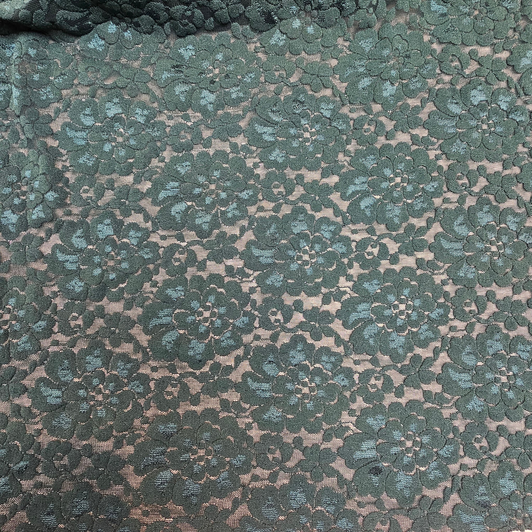Tissu en dentelle extensible vert profond (au 1/2m)