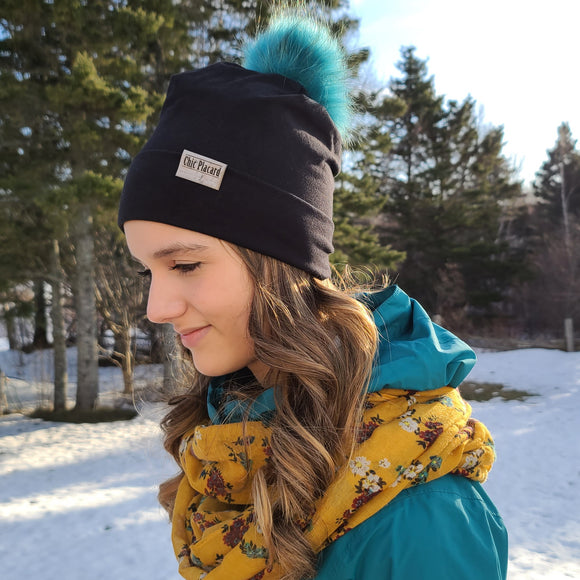 Entretien : Pour laver la tuque, retirez le pompon et la retourner sur l'envers.  Vous pouvez mettre la tuque à laver à délicat avec vos vêtements de couleurs semblables.  Sa taille ne changera pas :  les tissus ont été pré-lavés et pré-rétrécis.