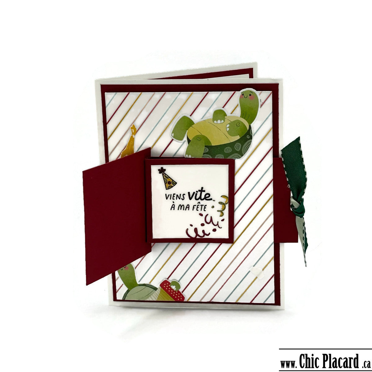 Carte de voeux fabriquée en scrapbooking par Linda Aubut. Différentes techniques ont été utilisées pour créer ce petit chef d'oeuvre : découpe, estampage, superposition, etc...
