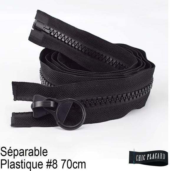 Zipper séparable - Plastique #8 - 70cm - 27.5 pouces - Noir
